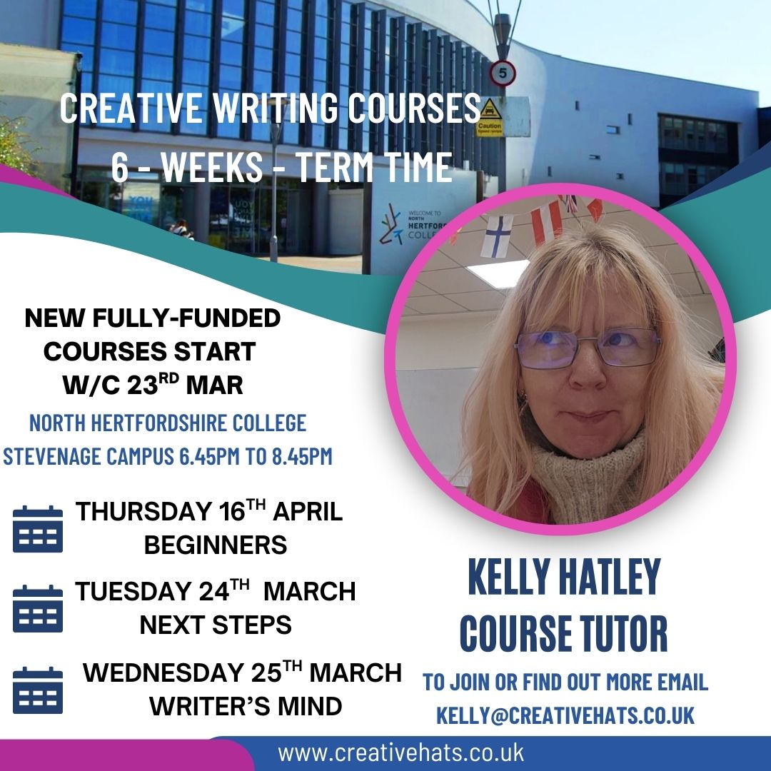 Kelly Hatley has been teaching for North Hertfordshire College for more than twenty years and is particularly pleased to let you know that the recent creative writing courses she has designed are currently fully funded – which means yes they are free to attend!